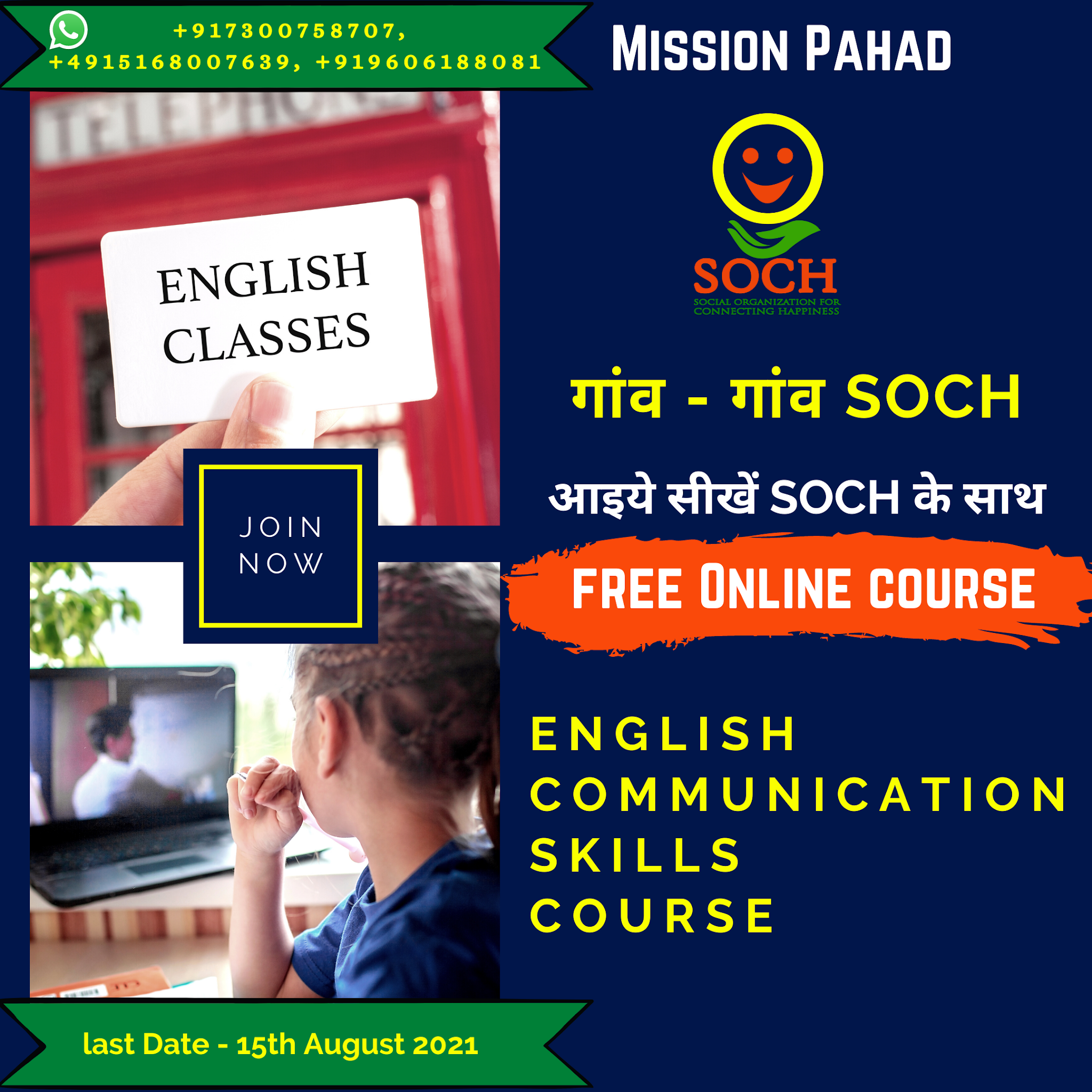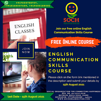 With the aforesaid objective, our SOCH organization is going to commence the Free Online English Communication Skills Course 2021.
