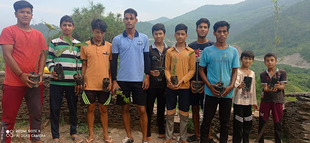सोच आर्गनाजेशन टीम टिहरी गढवाल, पट्टी – जुवा , अलेरु किल्याखाल में वृक्षारोपण की तस्वीरें।